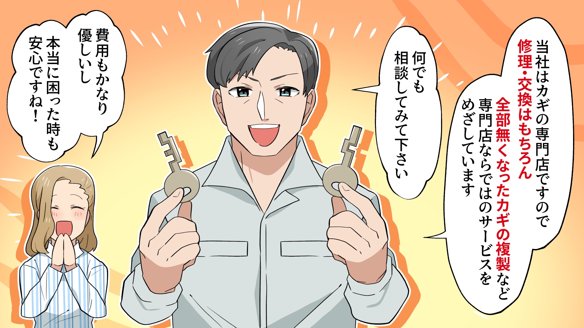 そんな 「安心して相談できる鍵屋」 をもっと身近に感じてもらえたらと、ゆるっと読める紹介マンガにしてみました。